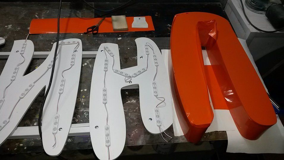 Совместно с мастерской BEAM BOX изготовили и провели монтаж вывески для детского фитнес-центра АПЕЛЬСИН. Конструкция - объемные световые буквы высотой 60 см из молочного акрила PLEXIGLAS® 3 мм (лицевая часть) и ПВХ 3 мм/6 мм (боковая/задняя часть), оклеенные пленкой ORACAL 8500. Основание - металлическая сварная рама, окрашенная в цвет стены. Подсветка - светодиодные модули 3 SMD, блок питания 150W.