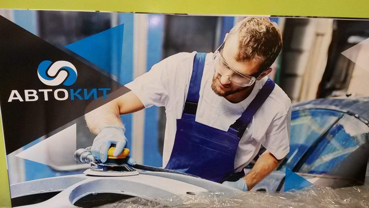 Оформление пространства офиса центра кузовного ремонта АвтоКит. Выполнили подбор тематических изображений высокого качества и изготовили панно из ПВХ размером 2000 х 1000 мм с широкоформатной печатью высокого качества 1440 dpi.